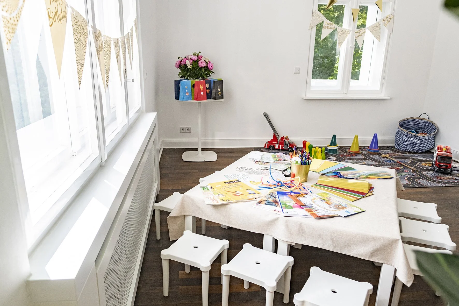 Bunte Deko, kindgerechte Möbel und jede Menge Platz zum Spielen und Basteln – unsere Indoor Location bietet auch